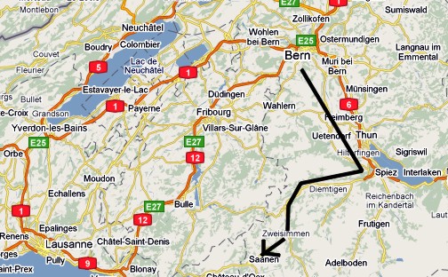 Von Bern aus: Autobahn bis Wimmis; enge kurvenreiche