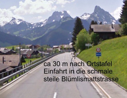 Blümlismattstrasse. Abzweigung von der Kantonsstrasse (Saanenmöserstrasse)